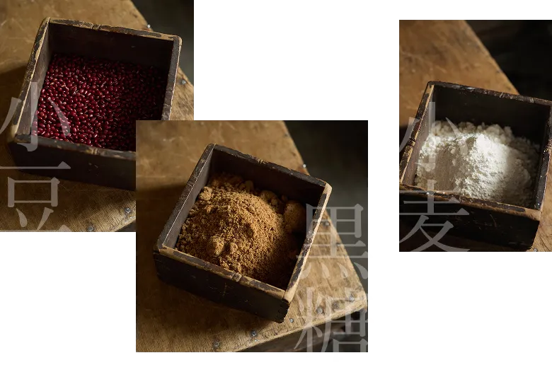 ブレンドした黒糖生地で包みました。